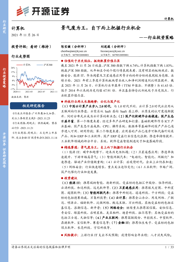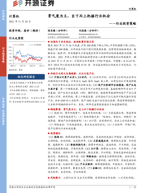 【开源证券】【20211126】计算机行业投资策略:景气度为王,自下而上把握行业机会-33页