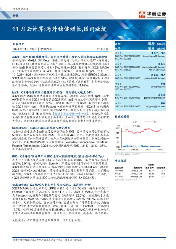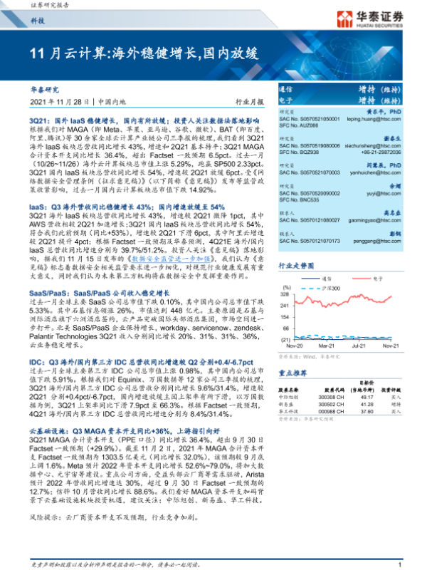 【华泰证券】【20211128】通信电子行业月报:11月云计算,海外稳健增长,国内放缓-22页