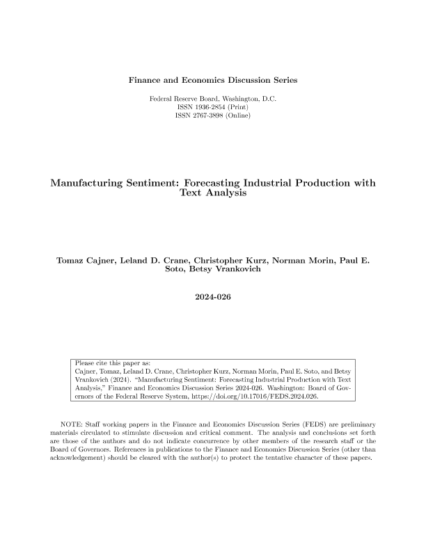 【Federal Reserve Board】【202404】Manufacturing Sentiment Forecasting Industrial Production with Text Analysis-46页