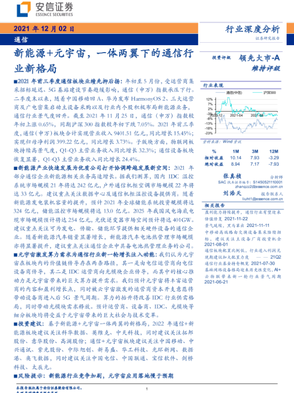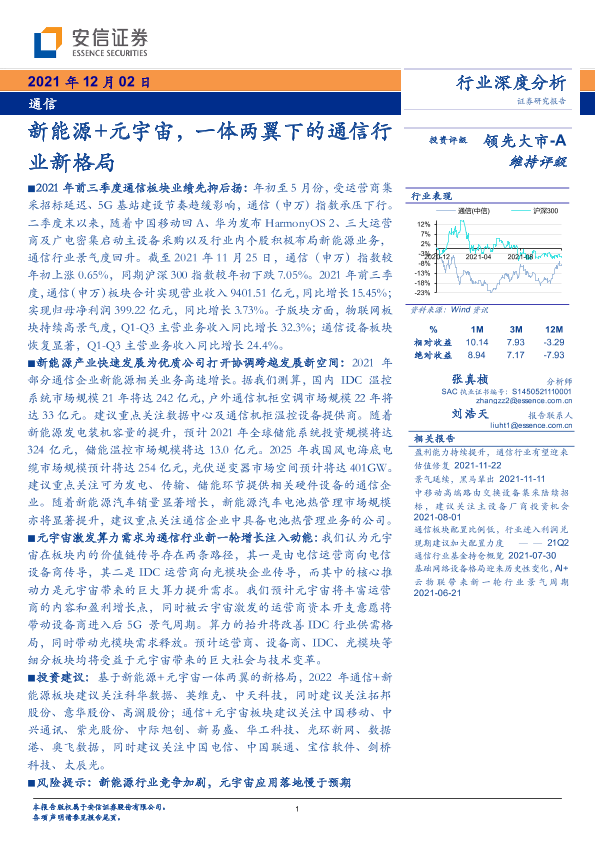 【安信证券】【20211202】通信行业深度分析:新能源+元宇宙,一体两翼下的通信行业新格局-34页