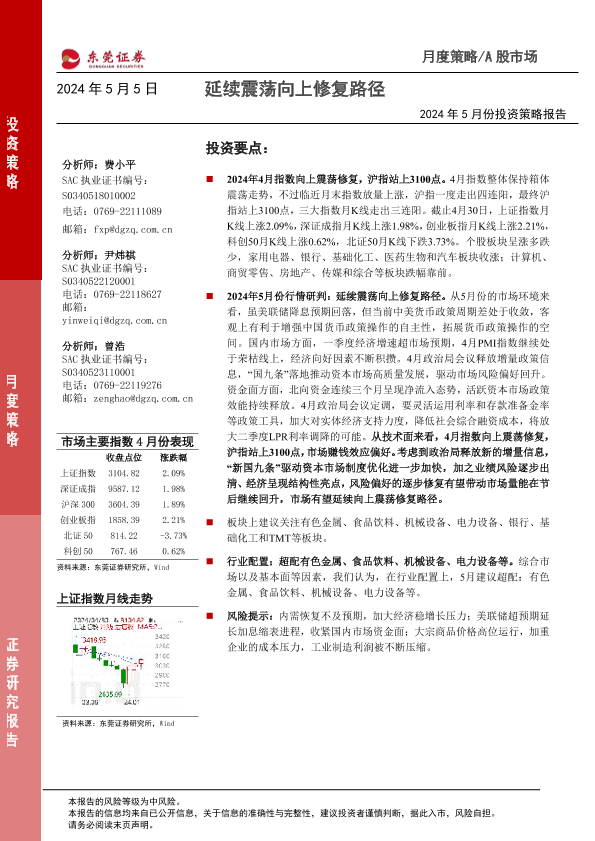 【东莞证券】【20240505】2024年5月份投资策略报告:延续震荡向上修复路径-13页