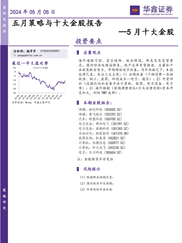【华鑫证券】【20240505】5月十大金股:五月策略与十大金股报告-19页