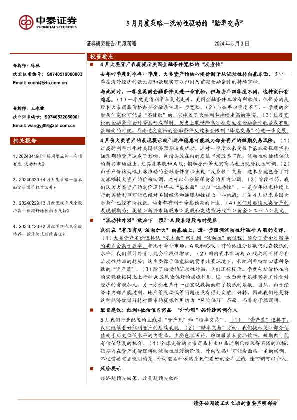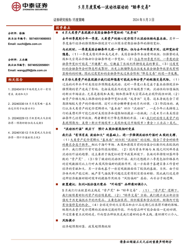 【中泰证券】【20240503】5月月度策略:流动性驱动的“赔率交易”-11页