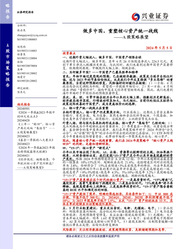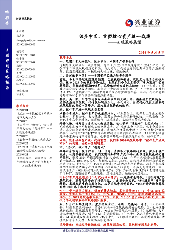 【兴业证券】【20240505】做多中国,重塑核心资产统一战线——A股策略展望-24页
