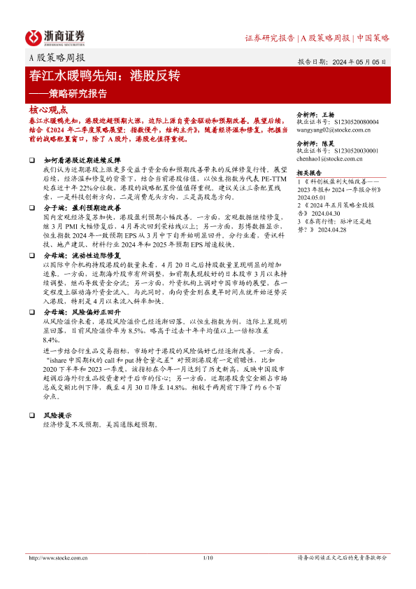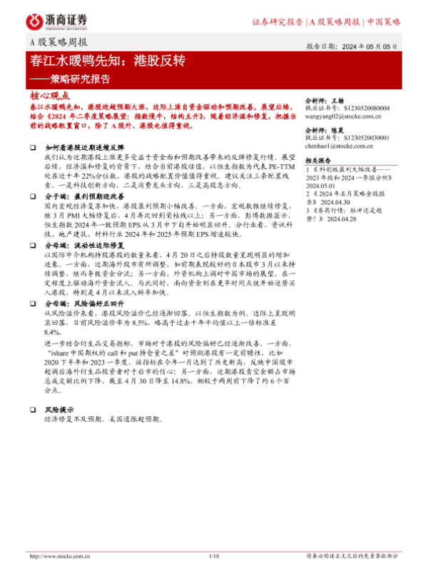 【浙商证券】【20240505】A股策略研究报告-春江水暖鸭先知:港股反转-10页