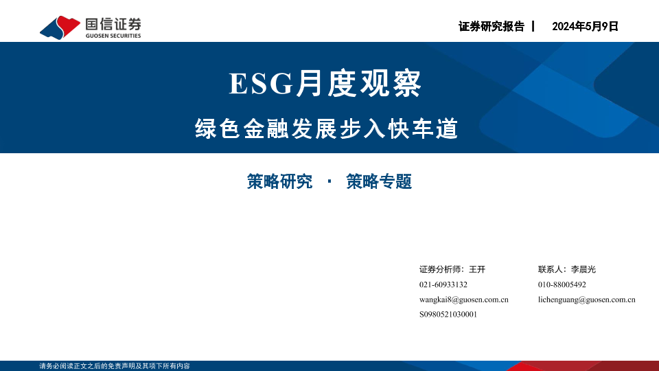 【国信证券】【20240509】ESG月度观察:绿色金融发展步入快车道-20页