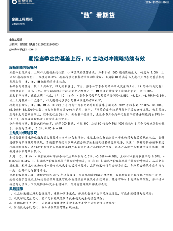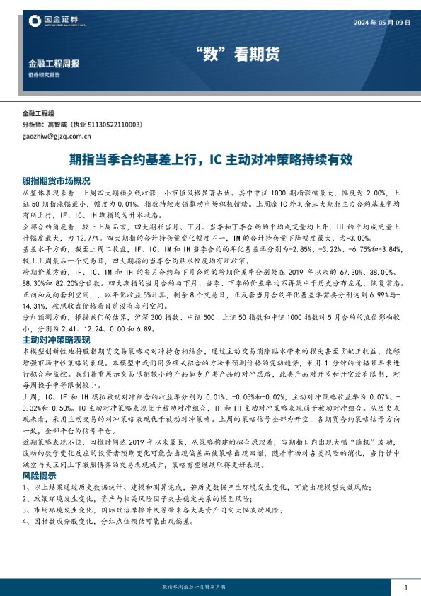 【国金证券】【20240509】“数”看期货:期指当季合约基差上行,IC主动对冲策略持续有效-12页