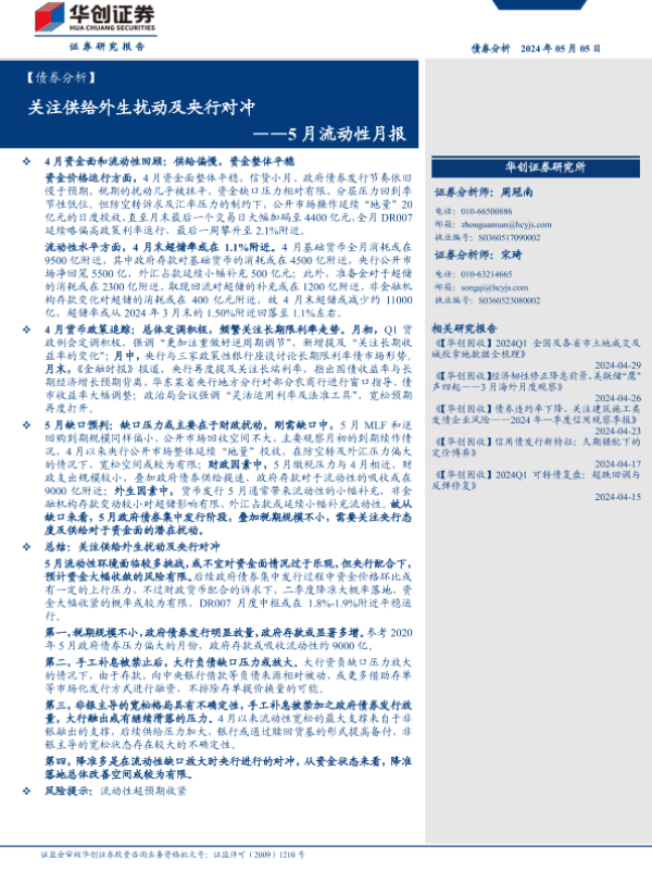 【华创证券】【20240505】【债券分析】5月流动性月报:关注供给外生扰动及央行对冲-21页