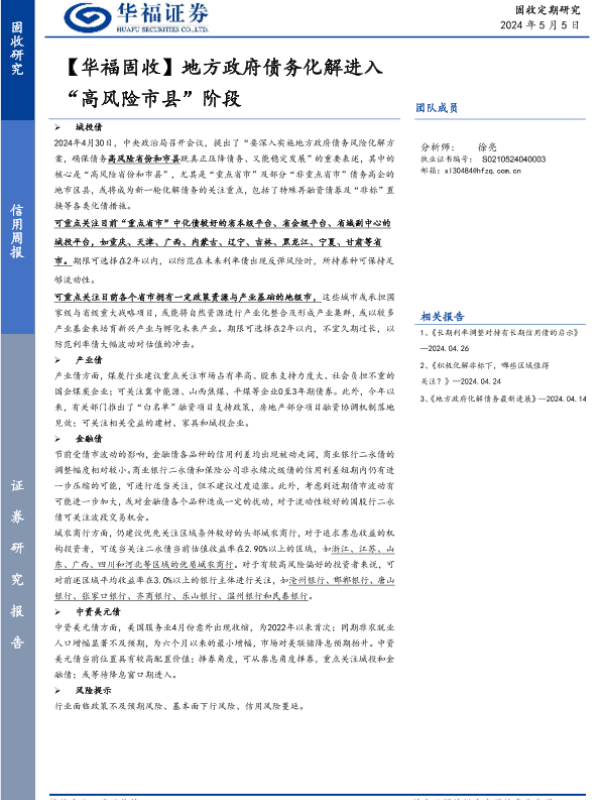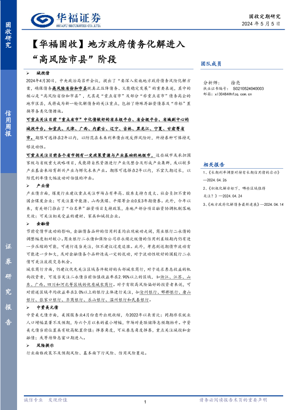 【华福证券】【20240505】【华福固收】地方政府债务化解进入“高风险市县”阶段-18页