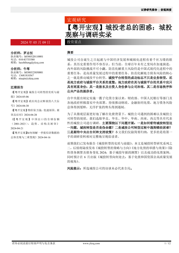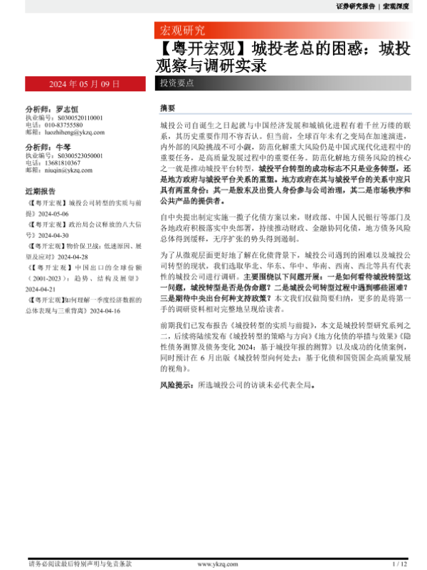 【粤开证券】【20240509】城投老总的困惑:城投观察与调研实录-12页