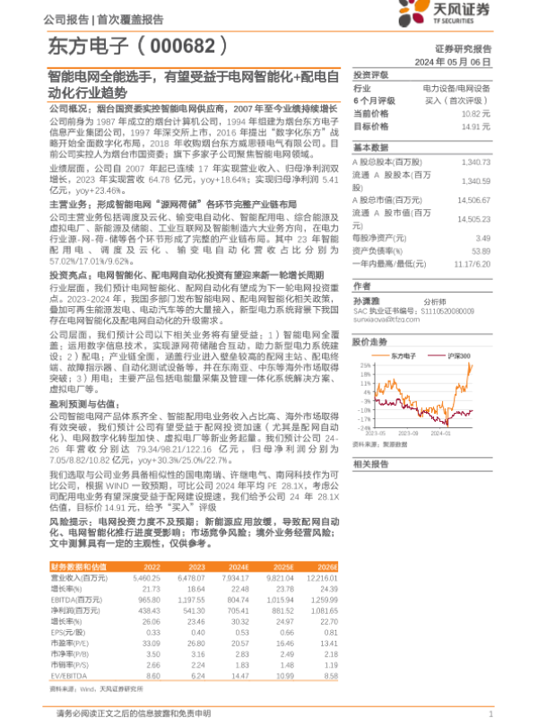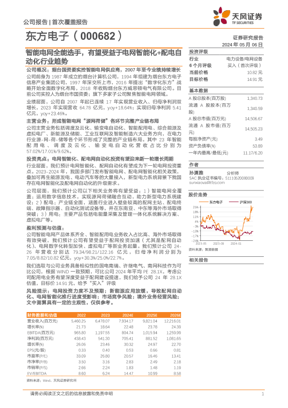 【天风证券】【20240506】东方电子(000682)智能电网全能选手,有望受益于电网智能化+配电自动化行业趋势-25页