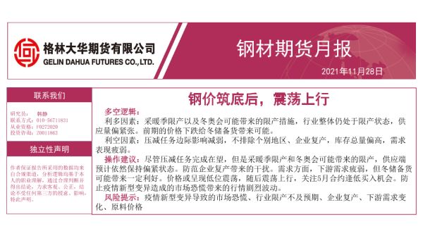 【格林大华期货】【20211128】钢材期货月报:钢价筑底后,震荡上行-26页