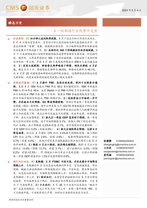 【海通证券】【20240504】五一假期海外宏观事件复盘:瞬息万变-16页
