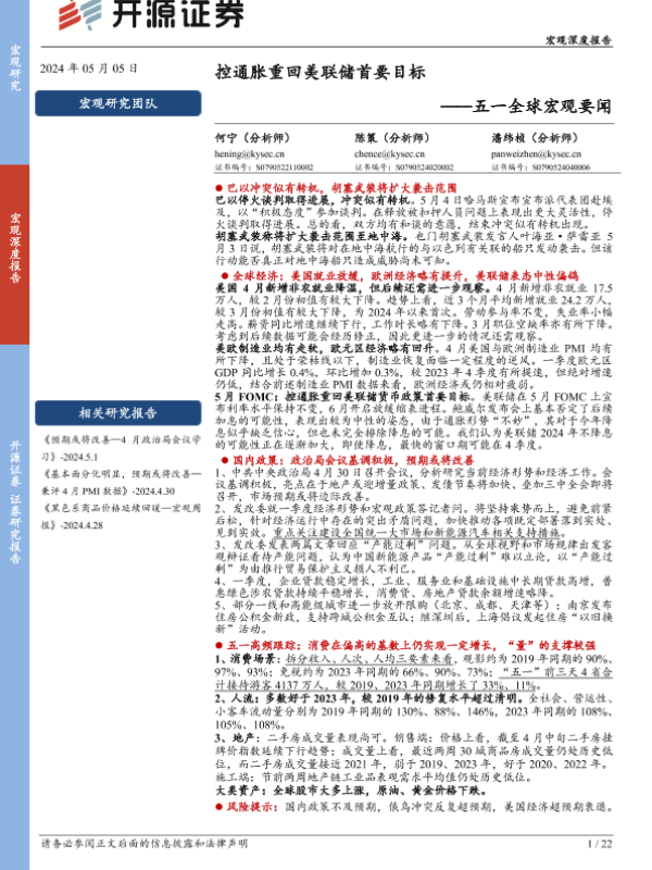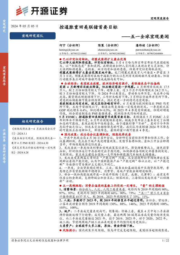 【开源证券】【20240505】五一全球宏观要闻:控通胀重回美联储首要目标-20页