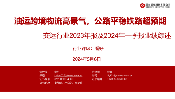 【浙商证券】【20240506】交运行业2023年报及2024年一季报业绩综述:油运跨境物流高景气,公路平稳铁路超预期-50页