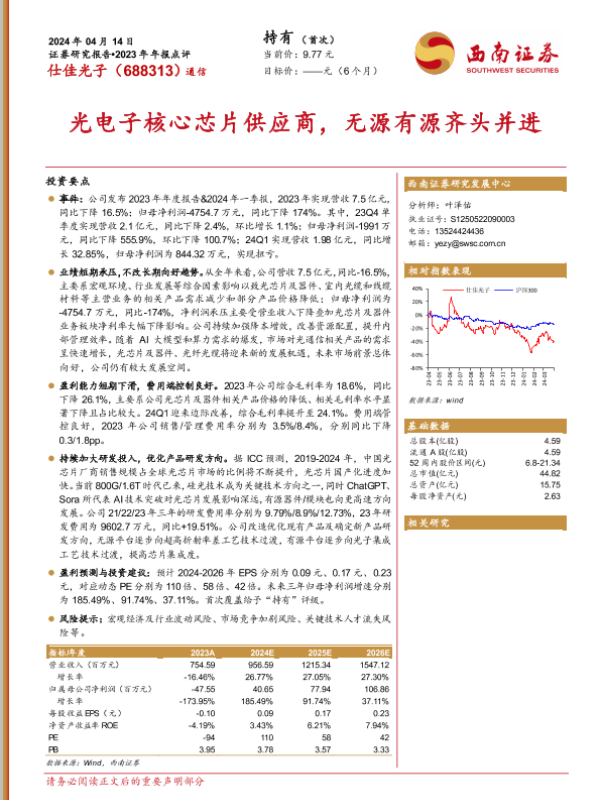 【西南证券】【20240414】仕佳光子-688313.SH-光电子核心芯片供应商,无源有源齐头并进-16页