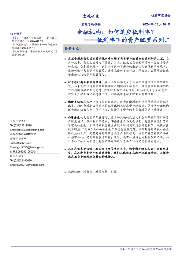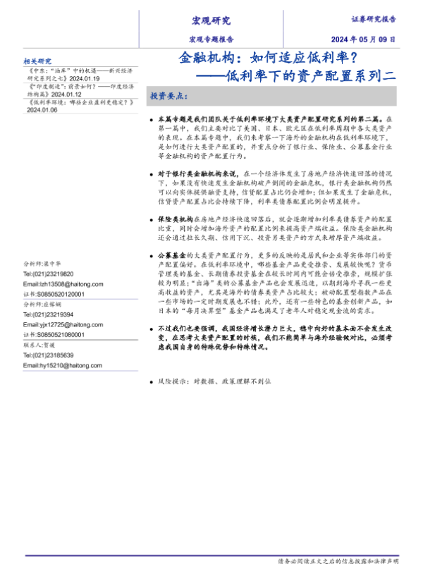 【海通证券】【20240509】低利率下的资产配置系列二:金融机构,如何适应低利率?-19页