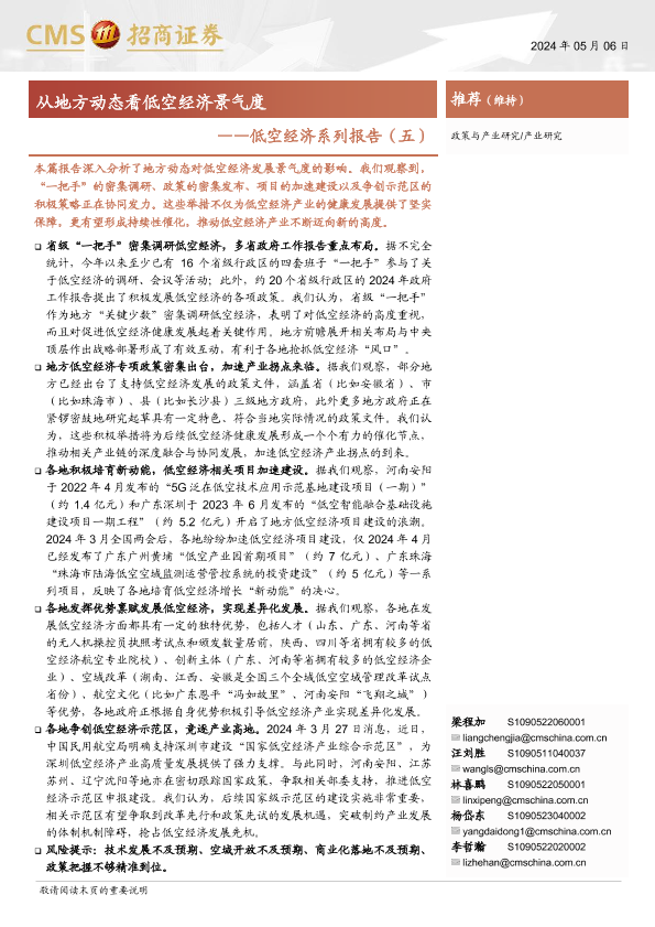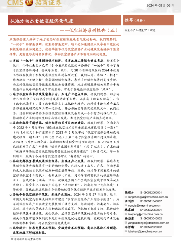 【海通证券】【20240506】低空经济系列报告(五):从地方动态看低空经济景气度-14页