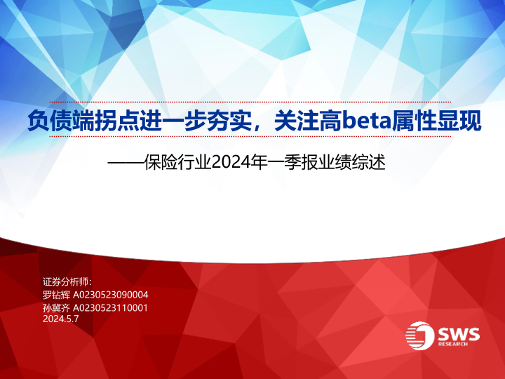 【申万宏源】【20240507】保险行业2024年一季报业绩综述:负债端拐点进一步夯实,关注高beta属性显现-24页