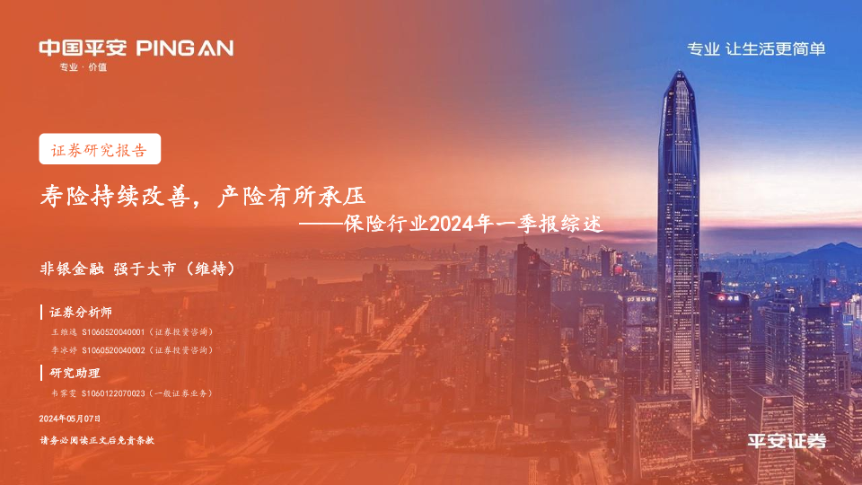【平安证券】【20240507】保险行业2024年一季报综述:寿险持续改善,产险有所承压-15页