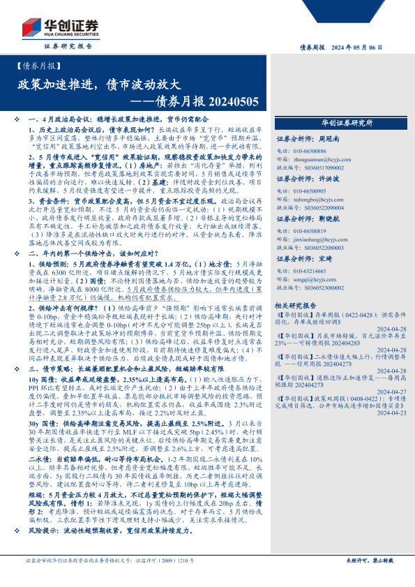 【华创证券】【20240506】债券月报:政策加速推进,债市波动放大-30页