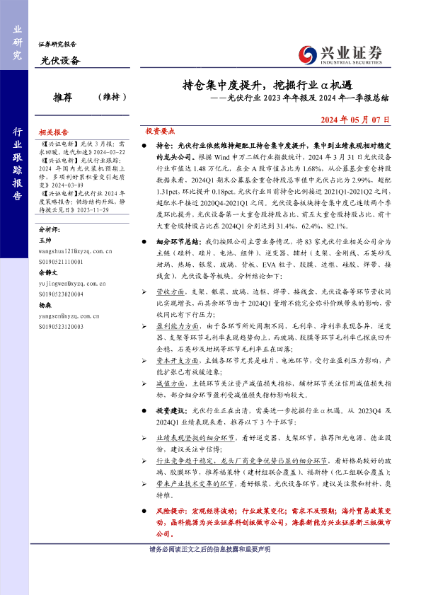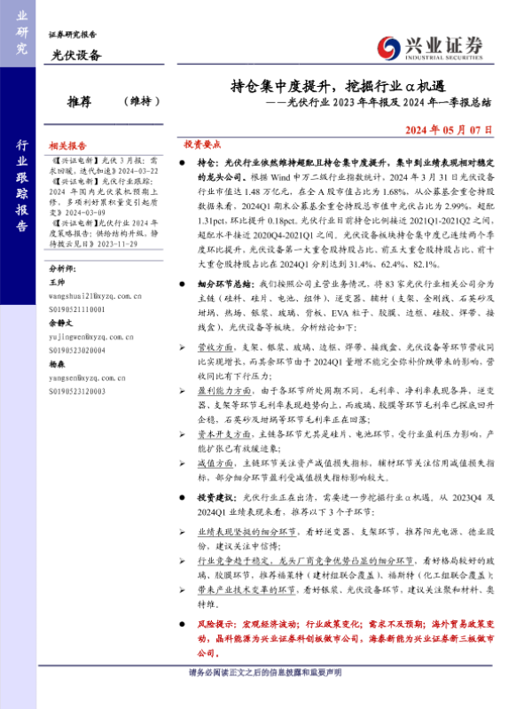 【兴业证券】【20240507】持仓集中度提升,挖掘行业α机遇——光伏行业2023年年报及2024年一季报总结-35页