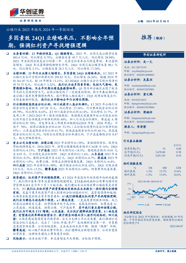 【华创证券】【20240508】公路行业2023年报及2024年一季报综述-16页
