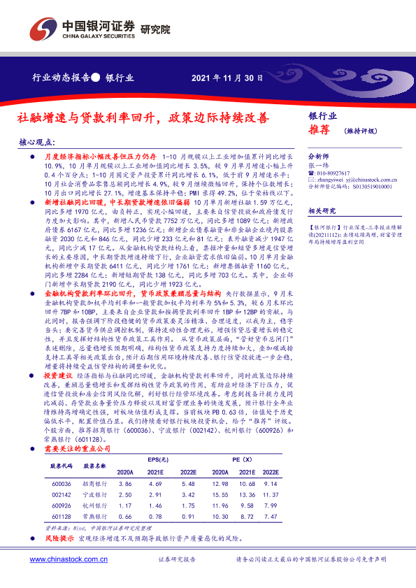 【银河证券】【20211130】银行业动态报告:社融增速与贷款利率回升,政策边际持续改善-23页