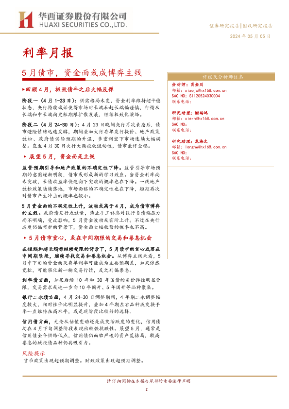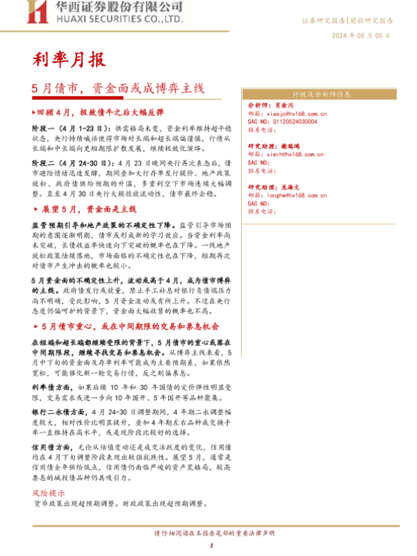 【华西证券】【20240505】5月债市,资金面或成博弈主线-20页