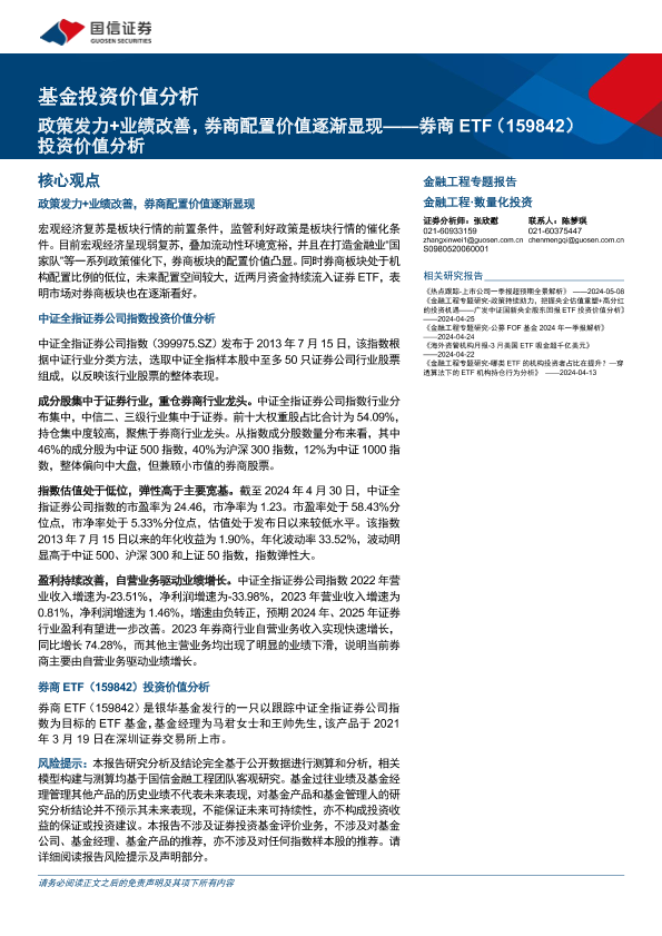 【国信证券】【20240510】券商ETF(159842)投资价值分析:政策发力+业绩改善,券商配置价值逐渐显现-17页