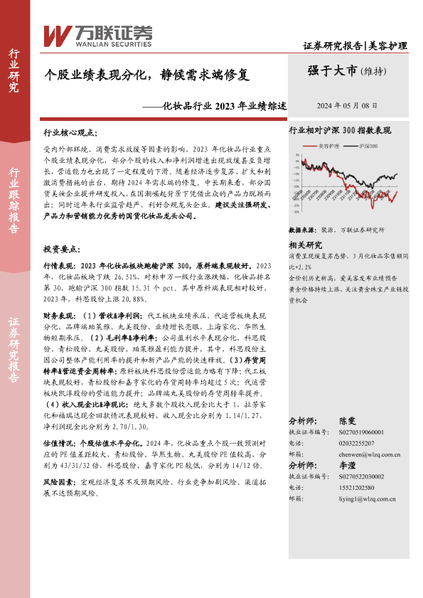 【万联证券】【20240508】化妆品行业2023年业绩综述:个股业绩表现分化,静候需求端修复-11页