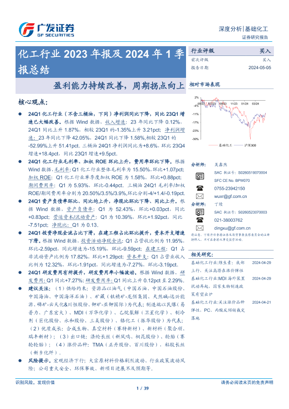 【广发证券】【20240505】化工行业2023年报及2024年1季报总结-39页