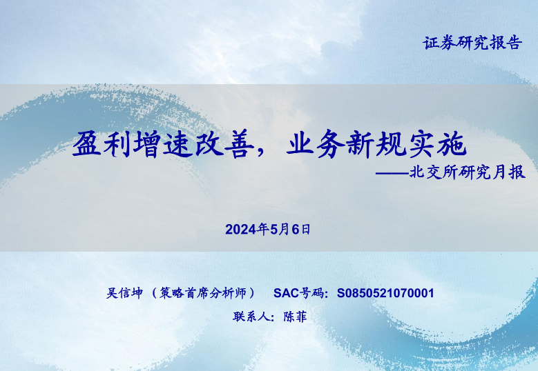 【海通证券】【20240506】北交所研究月报:盈利增速改善,业务新规实施-29页