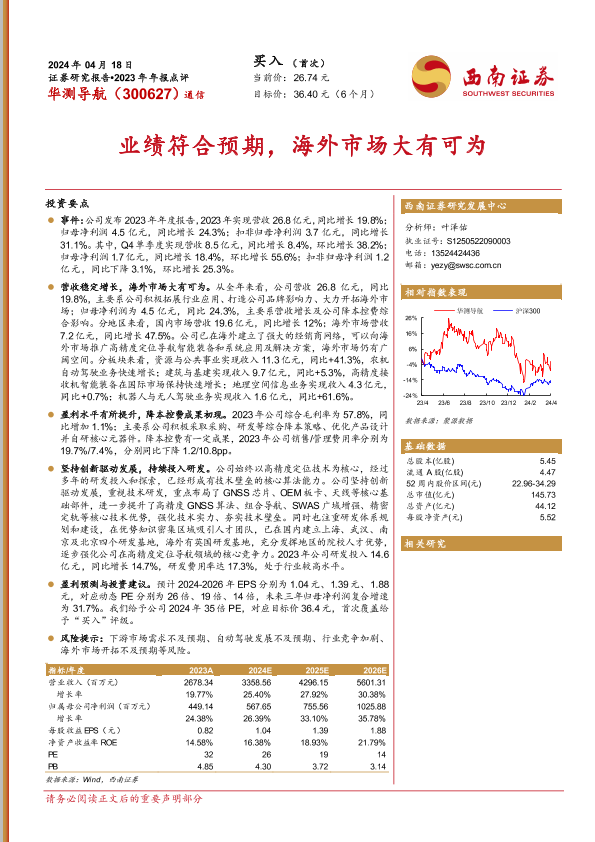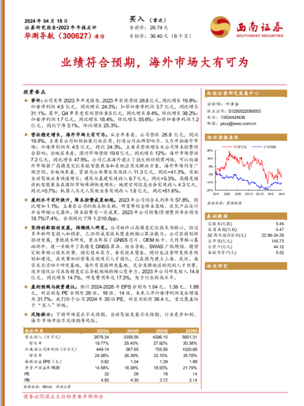 【西南证券】【20240418】华测导航-业绩符合预期,海外市场大有可为-15页