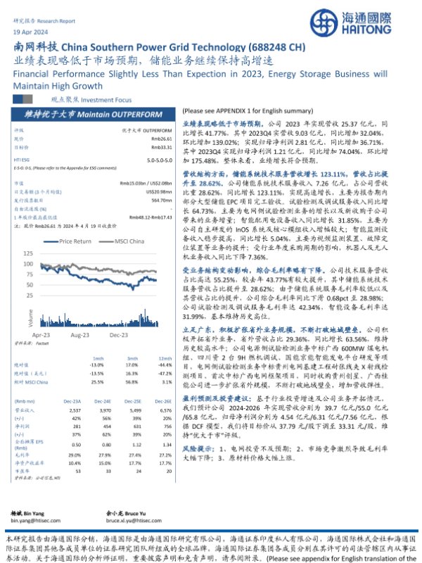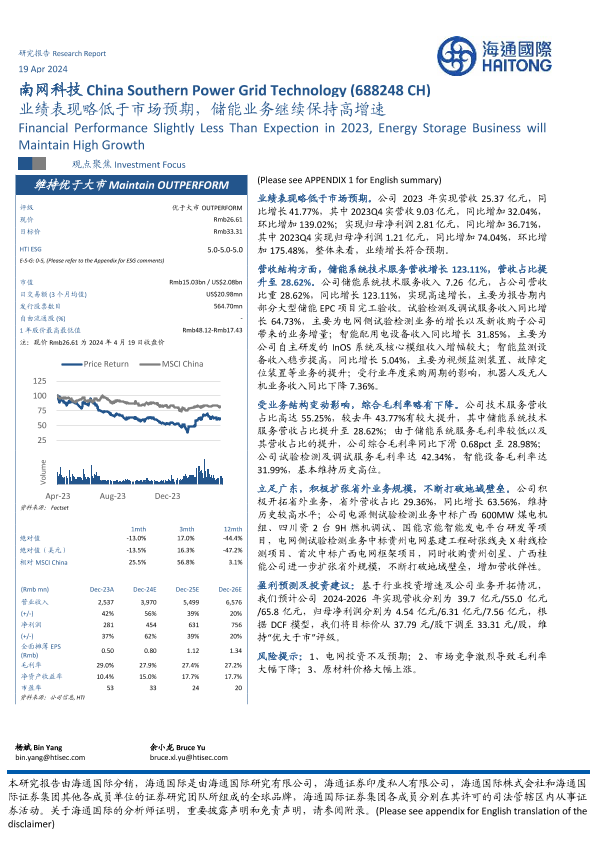 【海通国际】【20240419】南网科技-业绩表现略低于市场预期,储能业务继续保持高增速-12页
