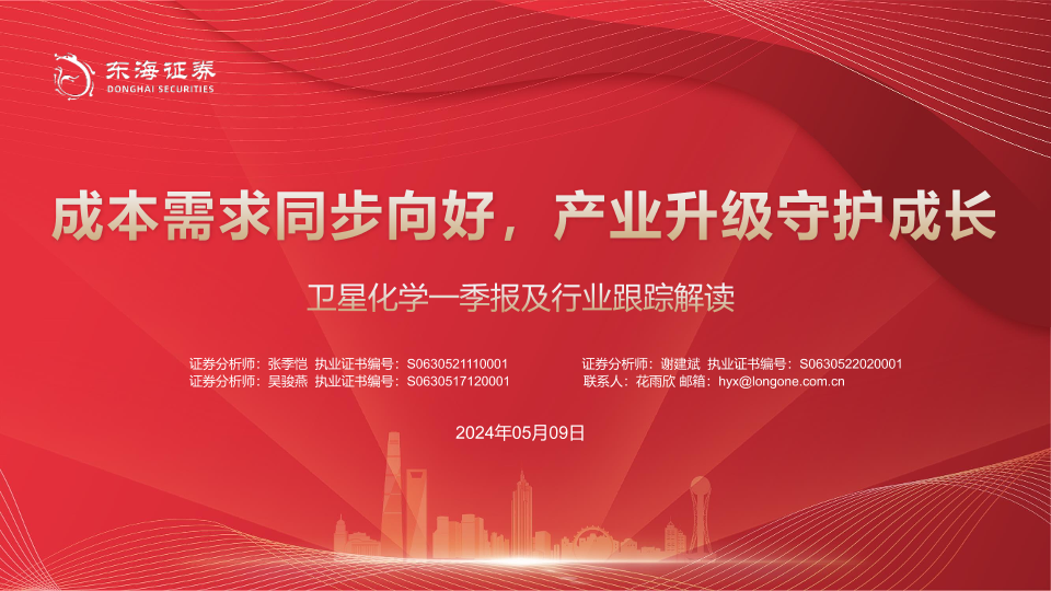 【东海证券】【20240509】卫星化学(002648)一季报及行业跟踪解读:成本需求同步向好,产业升级守护成长-24页
