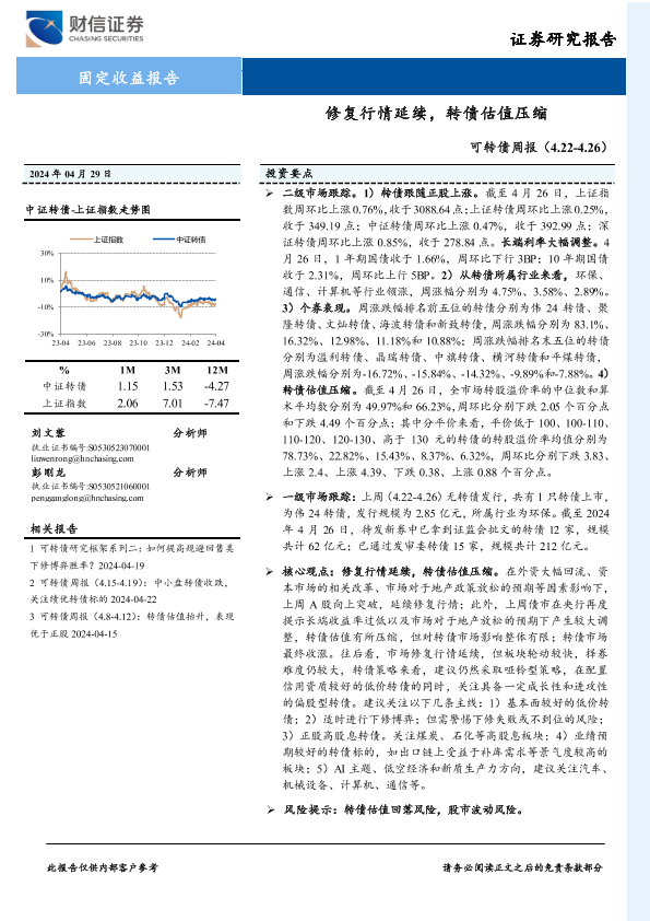 【财信证券】【20240429】可转债:修复行情延续,转债估值压缩-10页