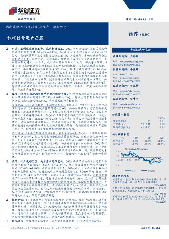 【华创证券】【20240510】周期建材2023年报及2024年一季报综述:积极信号逐步凸显-19页