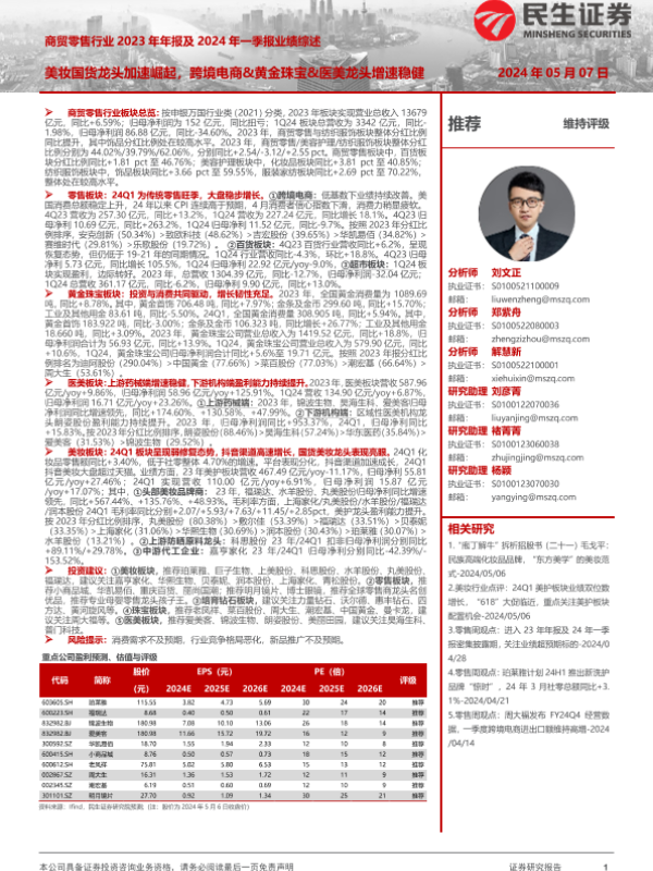 【民生证券】【20240507】商贸零售行业2023年年报及2024年一季报业绩综述-47页