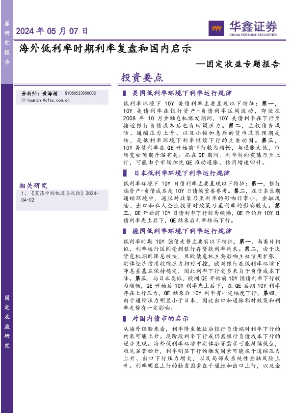 【华鑫证券】【20240507】海外低利率时期利率复盘和国内启示-25页