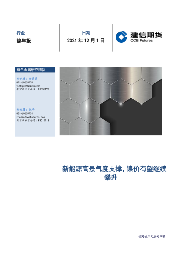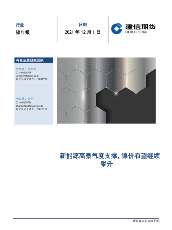 【建信期货】【20211201】镍年报:新能源高景气度支撑,镍价有望继续攀升-18页