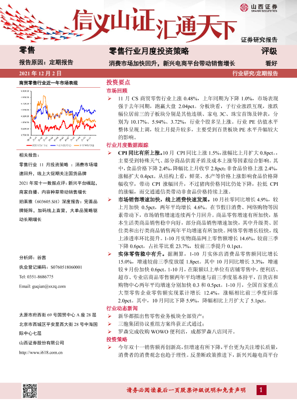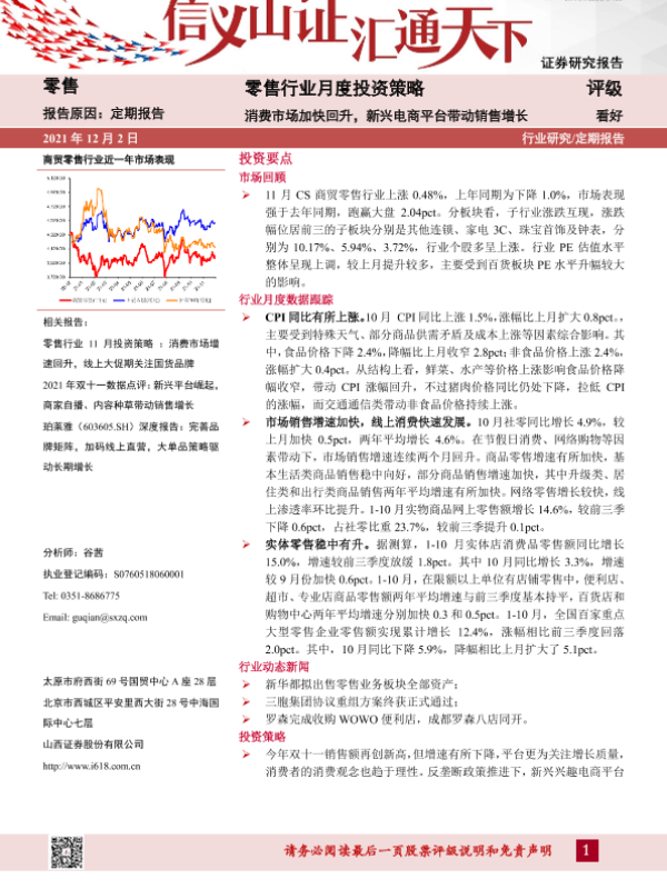 【山西证券】【20211202】零售行业月度投资策略:消费市场加快回升,新兴电商平台带动销售增长-16页
