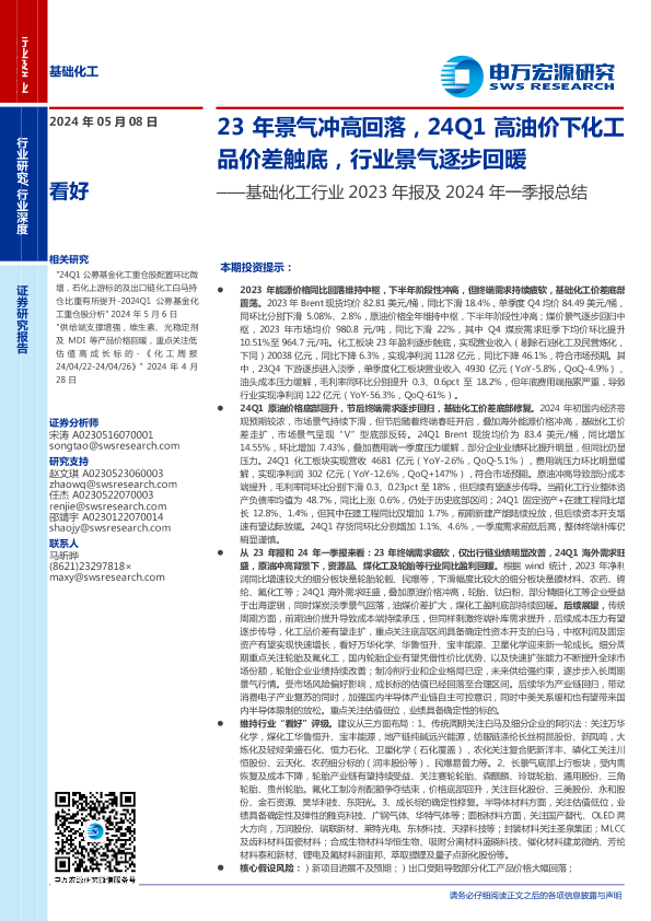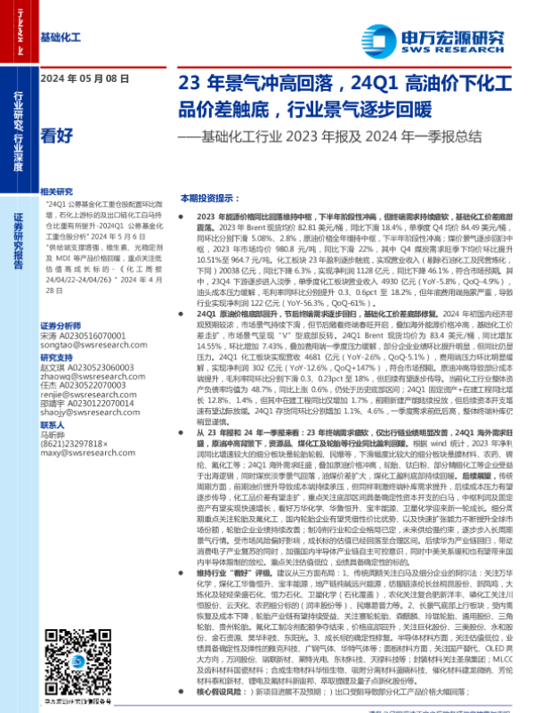 【申万宏源】【20240508】基础化工行业2023年报及2024年一季报总结-58页