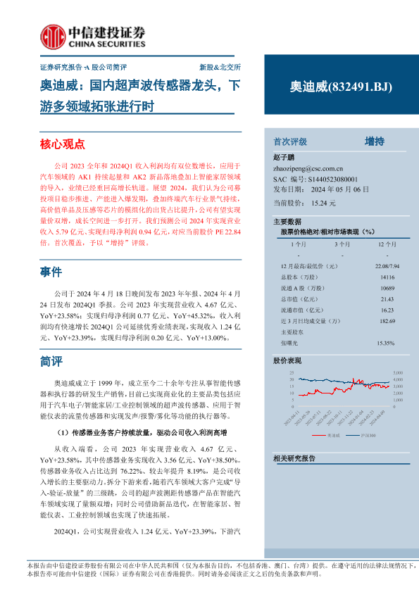 【中信建投证券】【20240506】奥迪威(832491)国内超声波传感器龙头,下游多领域拓张进行时-10页