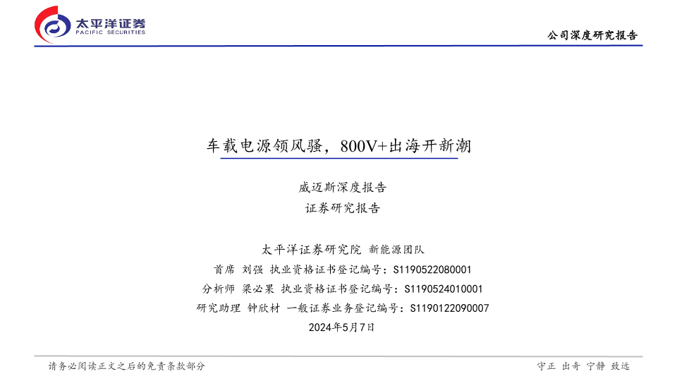 【太平洋证券】【20240507】威迈斯(688612)深度报告:车载电源领风骚,800V+出海开新潮-32页