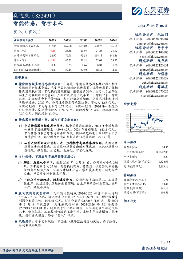 【东吴证券】【20240506】奥迪威(832491)智能传感,智控未来-22页