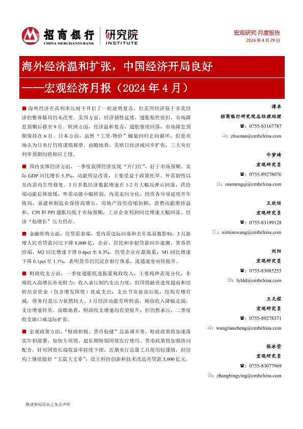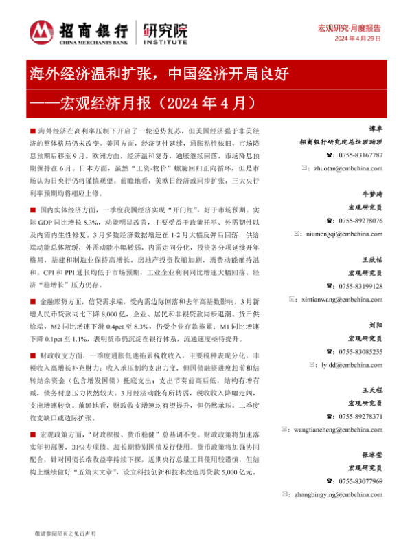 【招商银行】【20240429】宏观经济月报(2024年4月):海外经济温和扩张,中国经济开局良好-17页