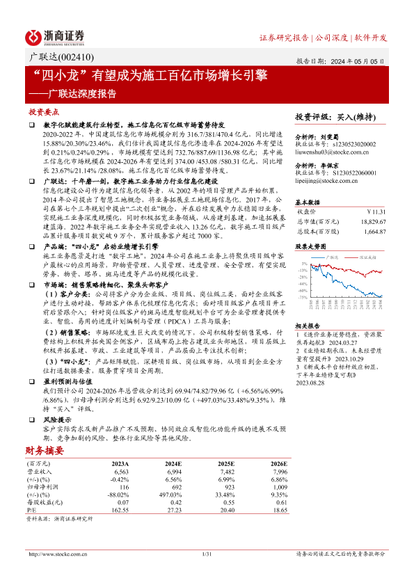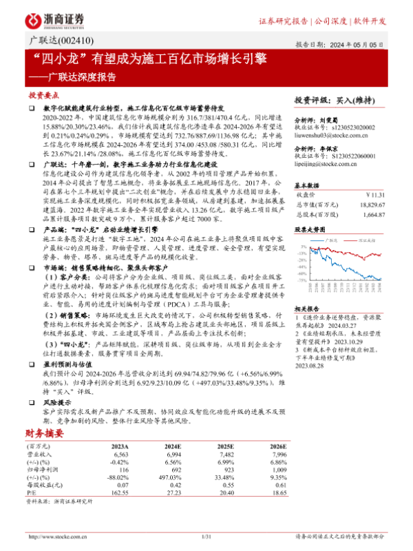【浙商证券】【20240505】广联达(002410)深度报告:“四小龙”有望成为施工百亿市场增长引擎-31页