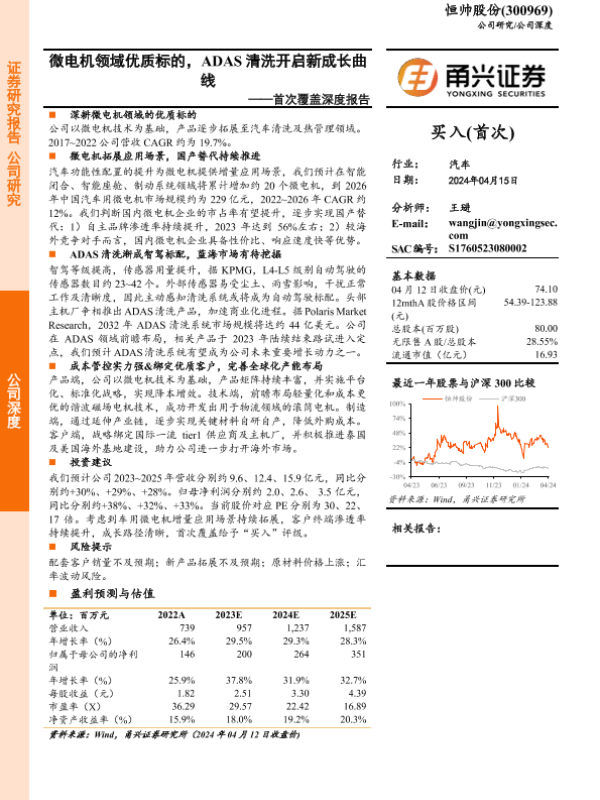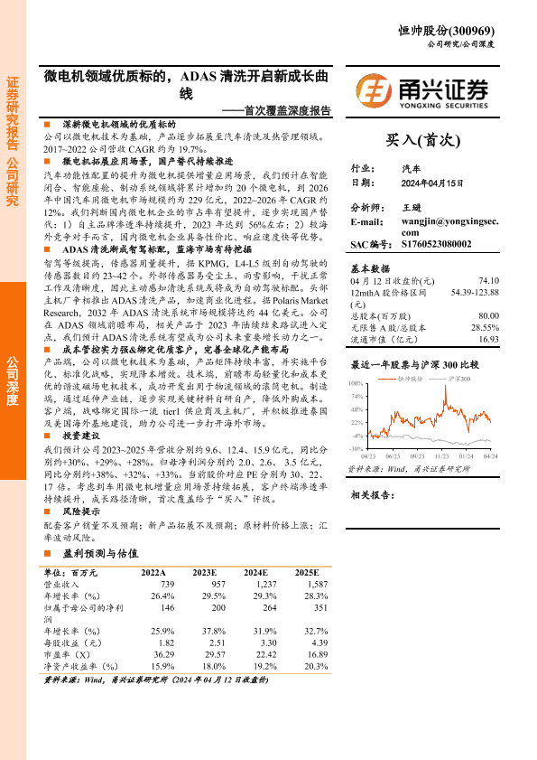 【甬兴证券】【20240415】恒帅股份-300969.SZ-首次覆盖深度报告:微电机领域优质标的,ADAS清洗开启新成长曲线-26页