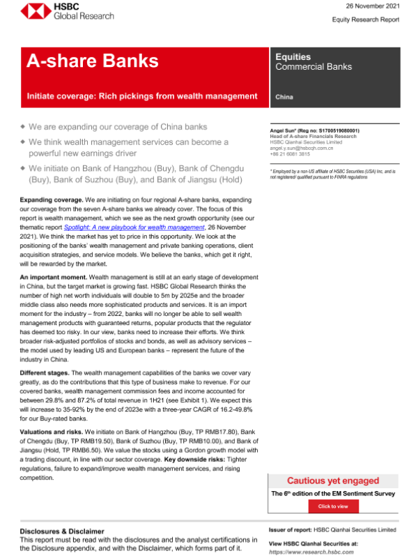 【HSBC Qianhai Securities Limited】【20211126】HSBC-中国商业银行业-启动覆盖范围:从财富管理中获取丰富的信息-78页